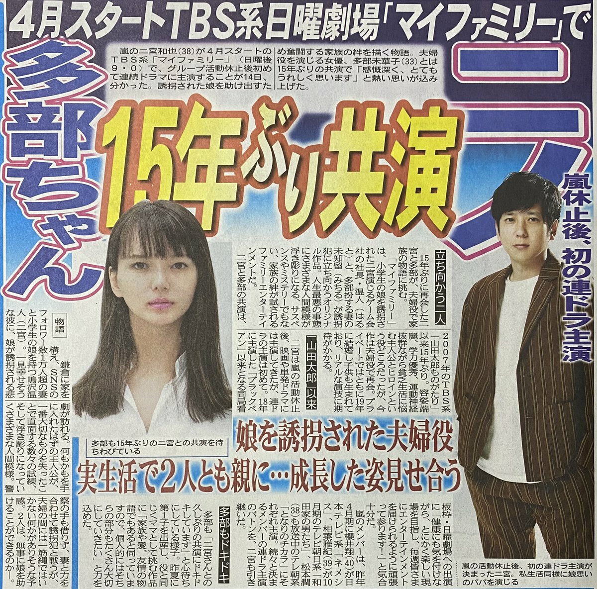 小畑璃杏 多部ちゃん可愛いな?自然なのに動作や所作が女の子っぽくてみんな好きになっちゃうな? ほうじ 多部ちゃんのコートかわいい しじみ 番宣でニノと多部ちゃんで夜会にでてやまたろ3人揃うのも夢じゃない??????????????????????? ピエール フジテレビ「なりゆき街道旅」に多部未華子さん。珍しい取り合わせだと思って見てみたら以前から多部ちゃんがこの番組のことが本当に好きで出演したいと公言しており、実際ハライチ澤部さんとますおか岡田さんを従えて多部ちゃんが行きたいところをただ巡るだけの2時間で目が離せなかった mina? にのみードラマ? しかも多部ちゃんと! Hiro ニノさんと多部ちゃんがドラマするの嬉しすぎて?北斗のドラマもあるし4月楽しみすぎる? らいち 返信先:@milesaway_05私も多部ちゃん見てた? お子さん産んだとは思えない可愛さよね? あき お多部ちゃんとセレブ夫婦とな。髪型どうなる!? ゆっくりブルー 多部ちゃん見逃しました アイノ?ミチ 4月はオリジナル作品に二宮くんと多部ちゃん「マイファミリー」?原作がないからどんな社長と父親役なのかまた二宮くんの演技が観られる✨楽しみが増えた?